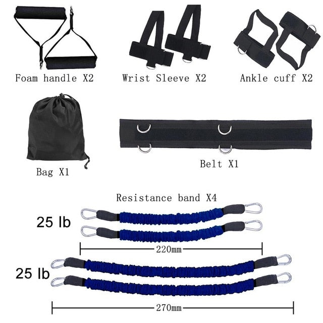 100 lbs variant (25 lbs of resistance in each band) and the 140 lbs variant (35 lbs in each) will help increase your speed and power by making your muscles work against an opposing force.